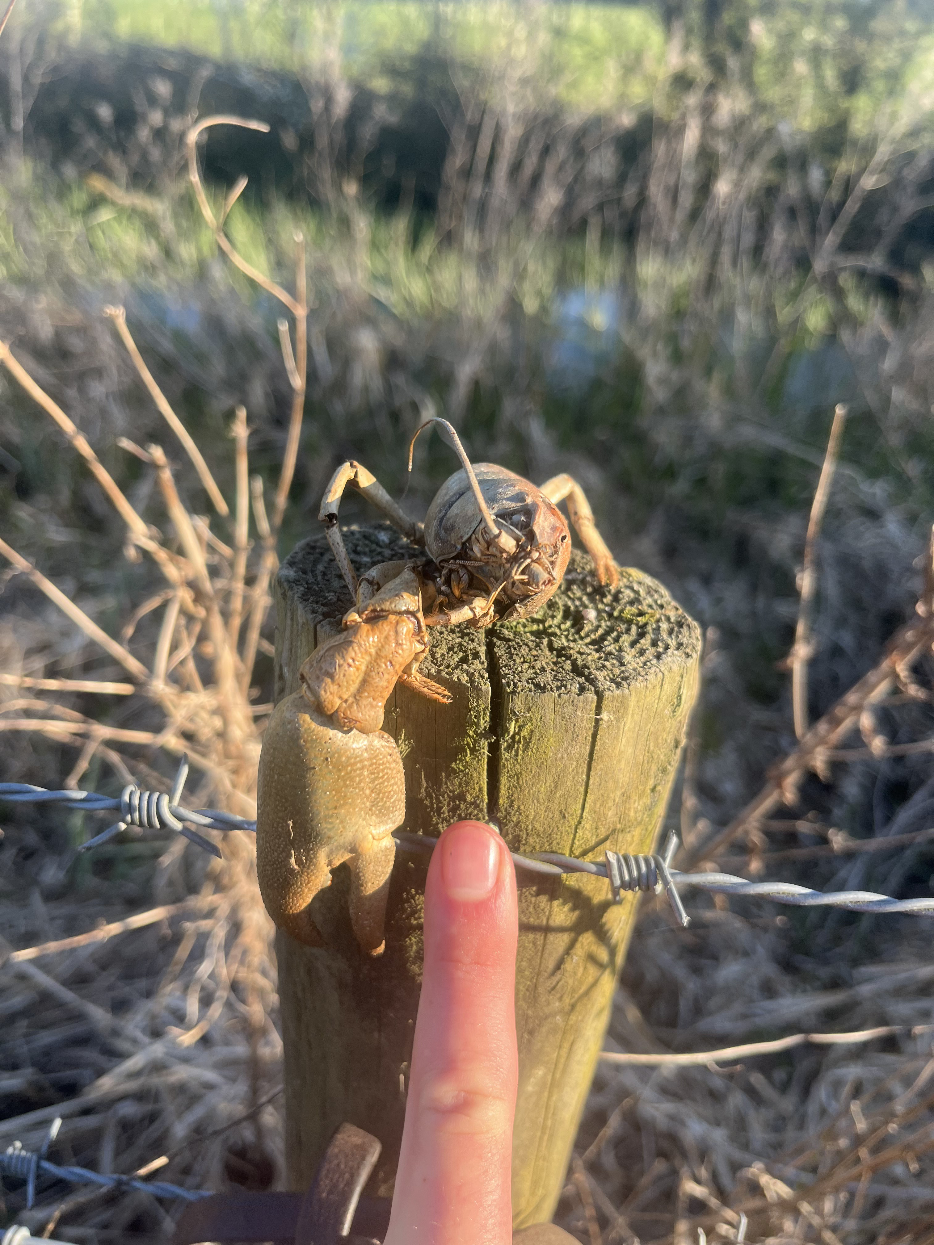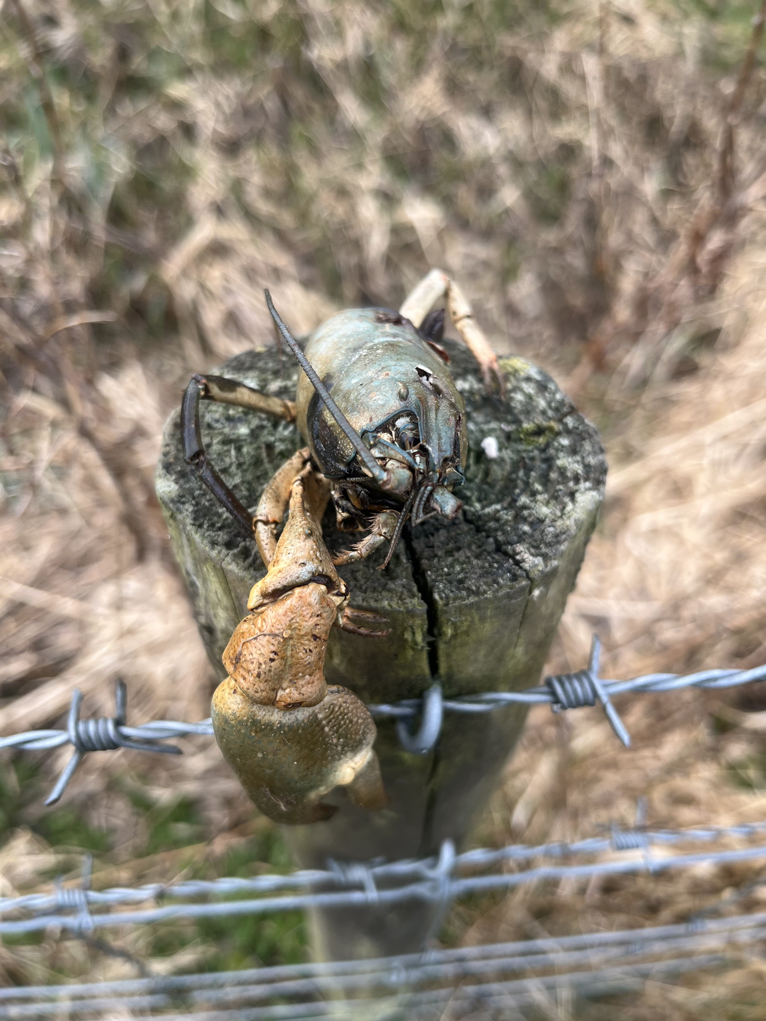 A little more gruesome, this half eaten American crayfish found in the grass by a Brook Group Supporter in an open field, presumably dropped by some predator. The lower part of the brook has an infestation really of these strange alien creatures.
