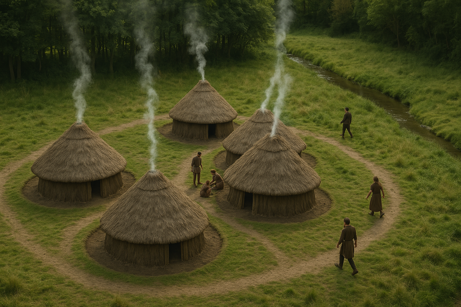 Finally to make it seem real, with a bit of unreality, here’s an AI impression of what I imagine the Arnold’s Srping settlement may have looked a bit like in 2500 BC. (That’s old Arnold himself , bottom right….). Don’t take this as gospel - it’s just to give you an idea. There were probably pens for animals around and about too.