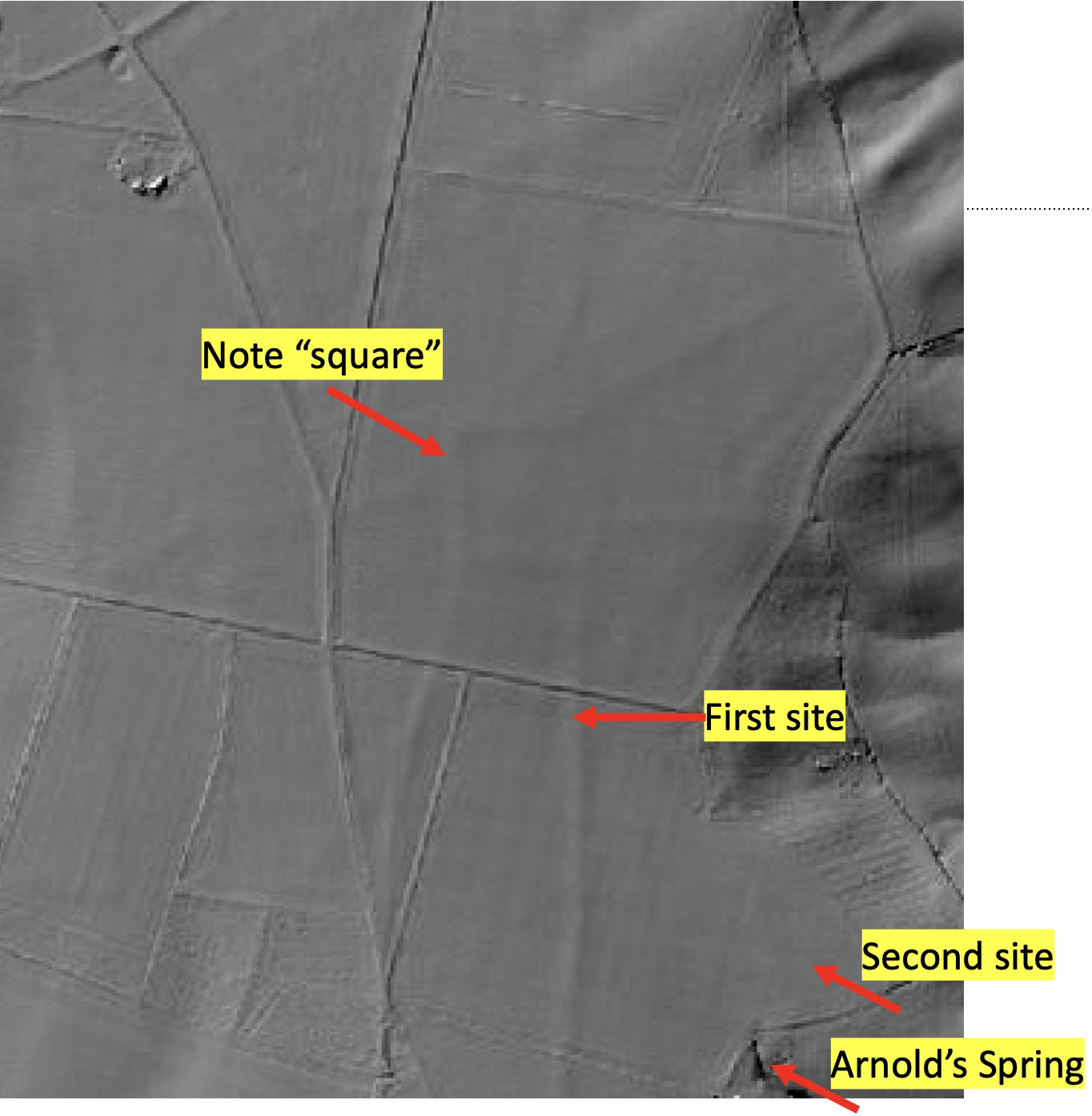Here’s the sites on a modern aerial image, which I have annotated: