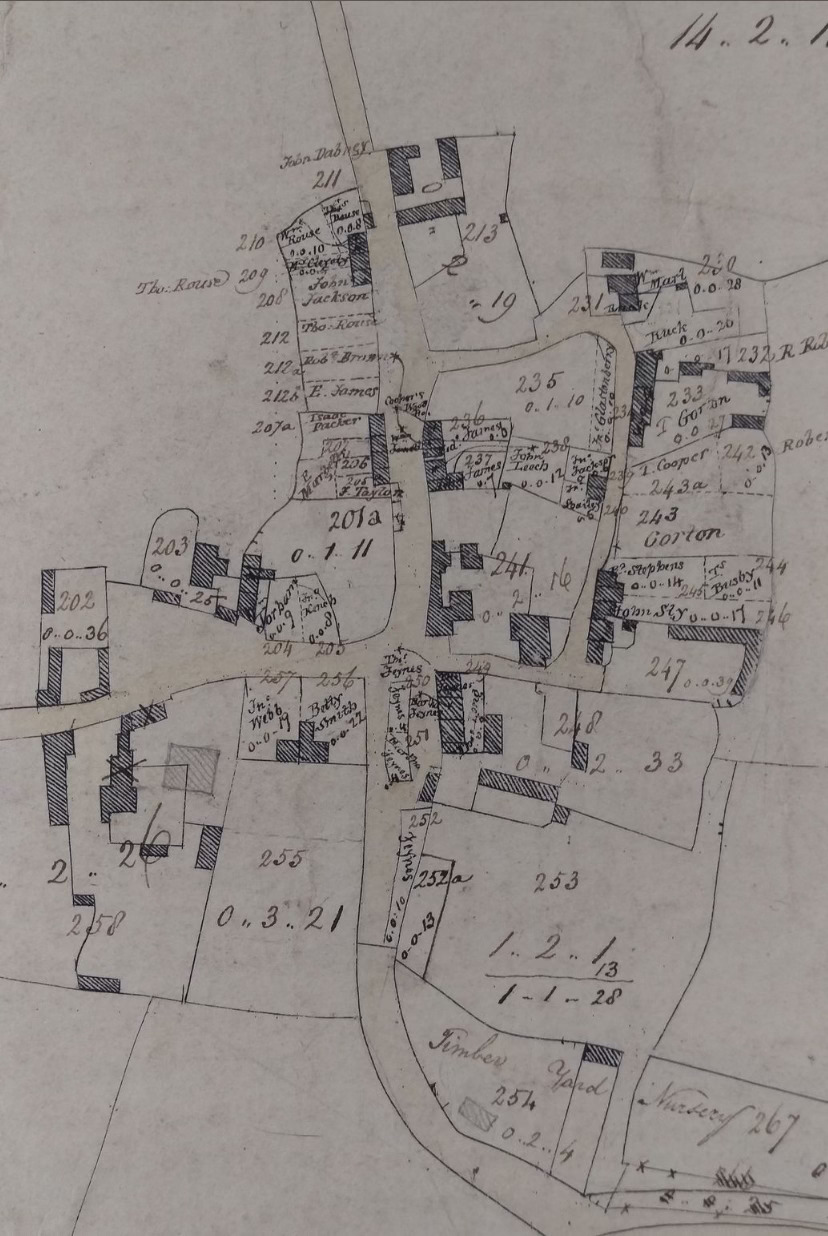 This afternoon I was contacted by Martin Hayward, born and brought up in the village with generations of local family history and heritage. He has examined the plan, which I show again here, as well as the 1820 tenant list and has a remarkable thing to tell us.