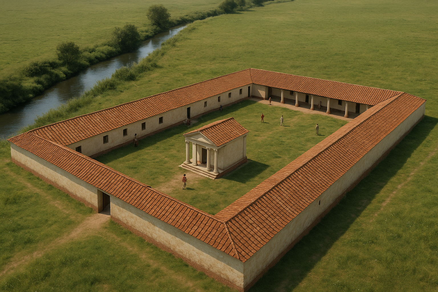 Picture this villa complex in its heyday. The main residence sits above Sherborne Brook's southern bank (then a meandering brook just to the North , its red-tiled roof visible across the valley. Smoke rises from workshops where craftsmen busy themselves with daily tasks. Brook water flows clear and constant past the villa's threshold, feeding ornamental ponds and providing power for grain mills.