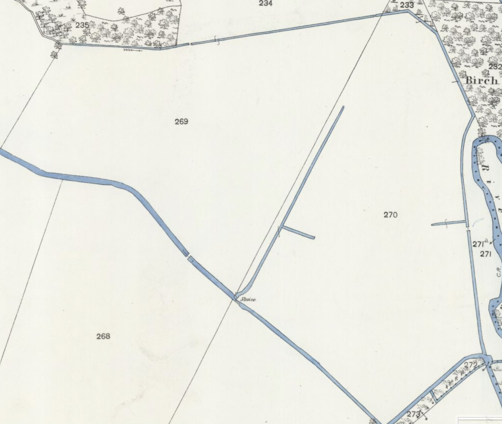 Here’s a late 19thC Ordnance Survey map, showing a substantial sluice just to the SE of the suspected villa. That area that this sluice flooded was called “Drowned meadow” in 1820.