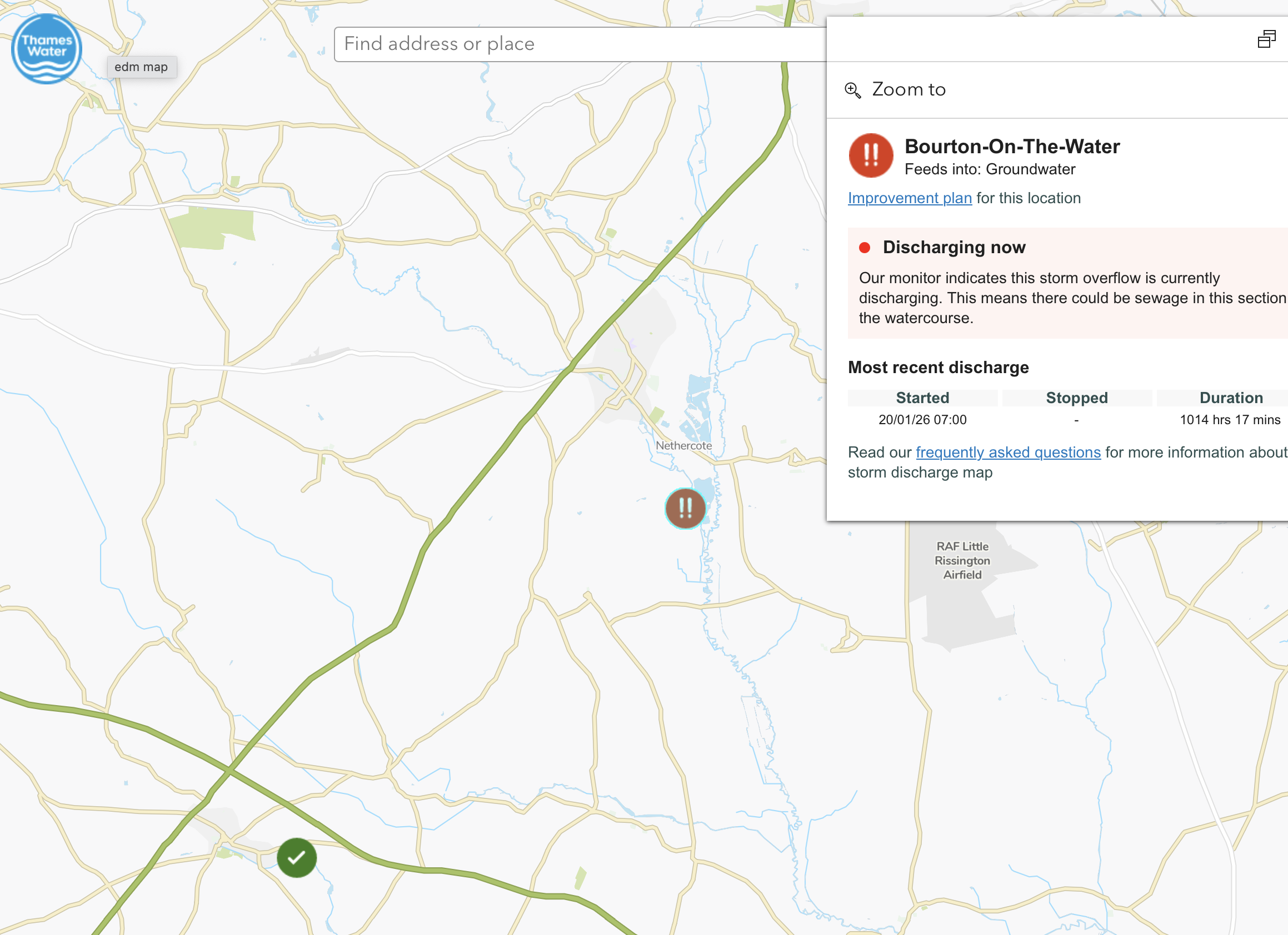 Thames Water storm overflow map.(Click on the map at the symbol at Bourton)