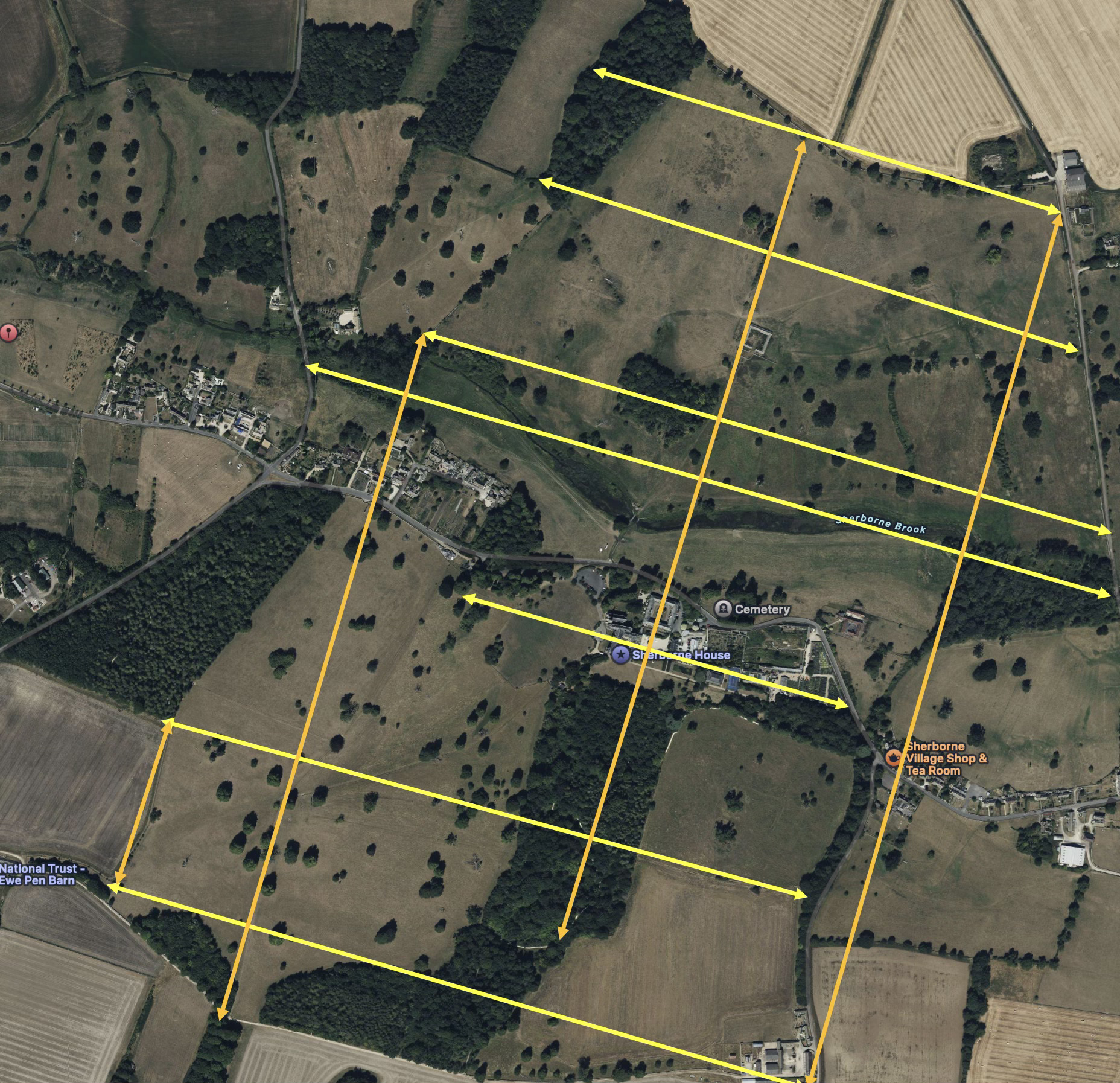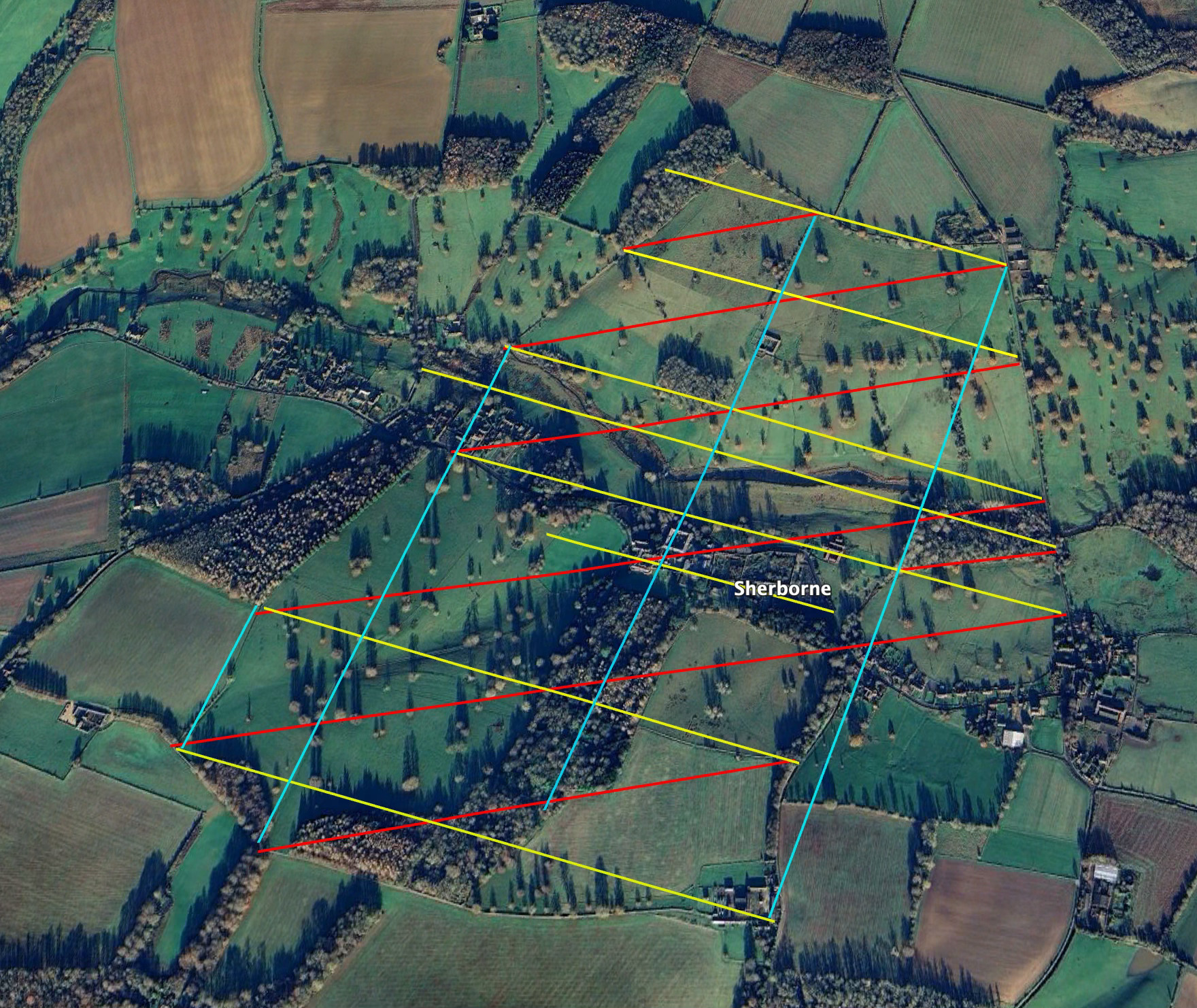 This is a little more of my obsessive map reading about the peculiar lay out of Sherborne’s Parkland. My slightly crude graphics are now being checked carefully with a QGIS, a “proper geo-mapping tool”. More results from there in due course, but as I was uploading the data already found of the perpendicular parallel lines of association between the gates, doors and filed corners around Sherborne Park, yet another set jumped out at me.