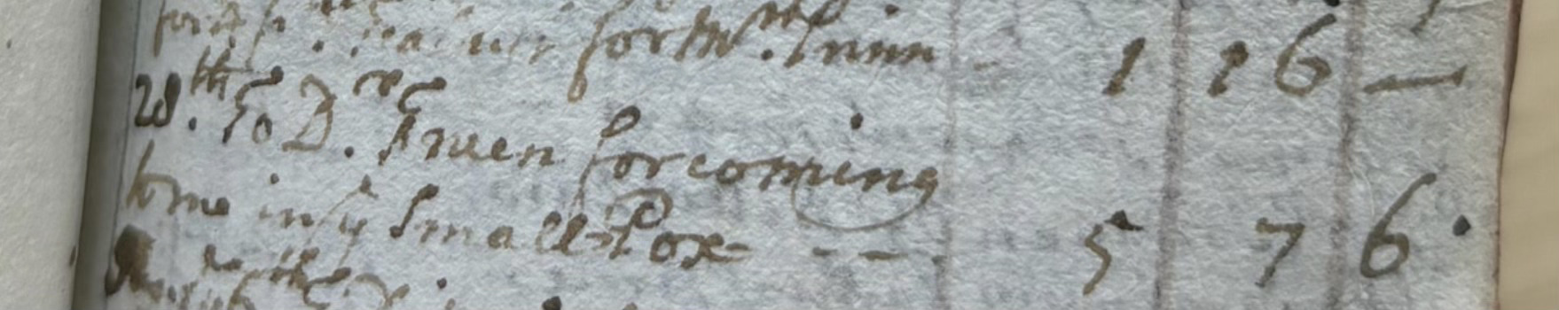 At this entry here we see that John Dutton paid a significant sum of money for a doctor to come and treat him. His ailment…? SMALLPOX!