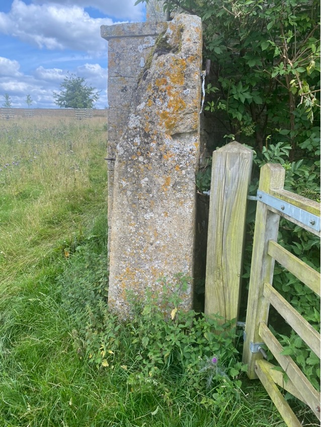 - Gate posts in Lodge Park. At a couple of points in the parkland, extremely tall gate posts have been erected that appear to have some age. Here are pics of two of them, the first at the NE corner of the Park, and the second adjacent to the derelict tumble-down listed barn to the south of Lodge Park. I wonder if their unusual height is related to the fact the gates needed to be tall enough to prevent deer leaping them.