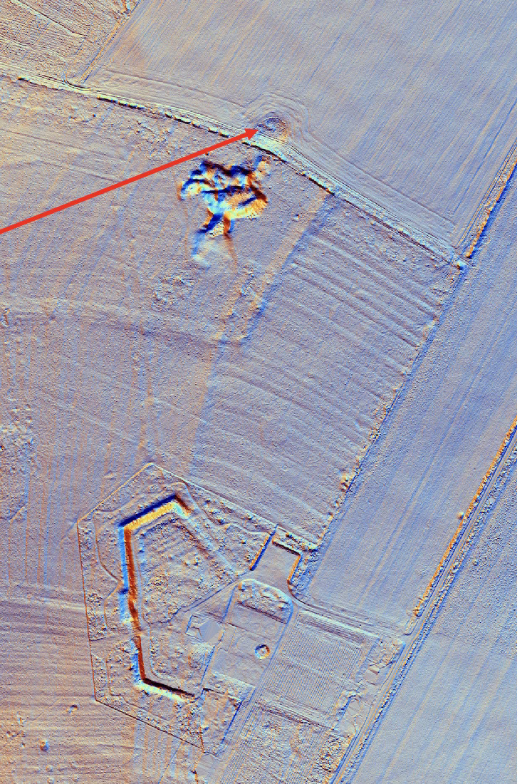 I have visited the site but there is no obvious sign off the stone. However analysis of the Lidar image shows an anomaly. Could this be the stone shown on the map , but fallen? Such a stone would have damaged a plough, perhaps explaining why trees have been allowed to grow in the immediate vicinity.