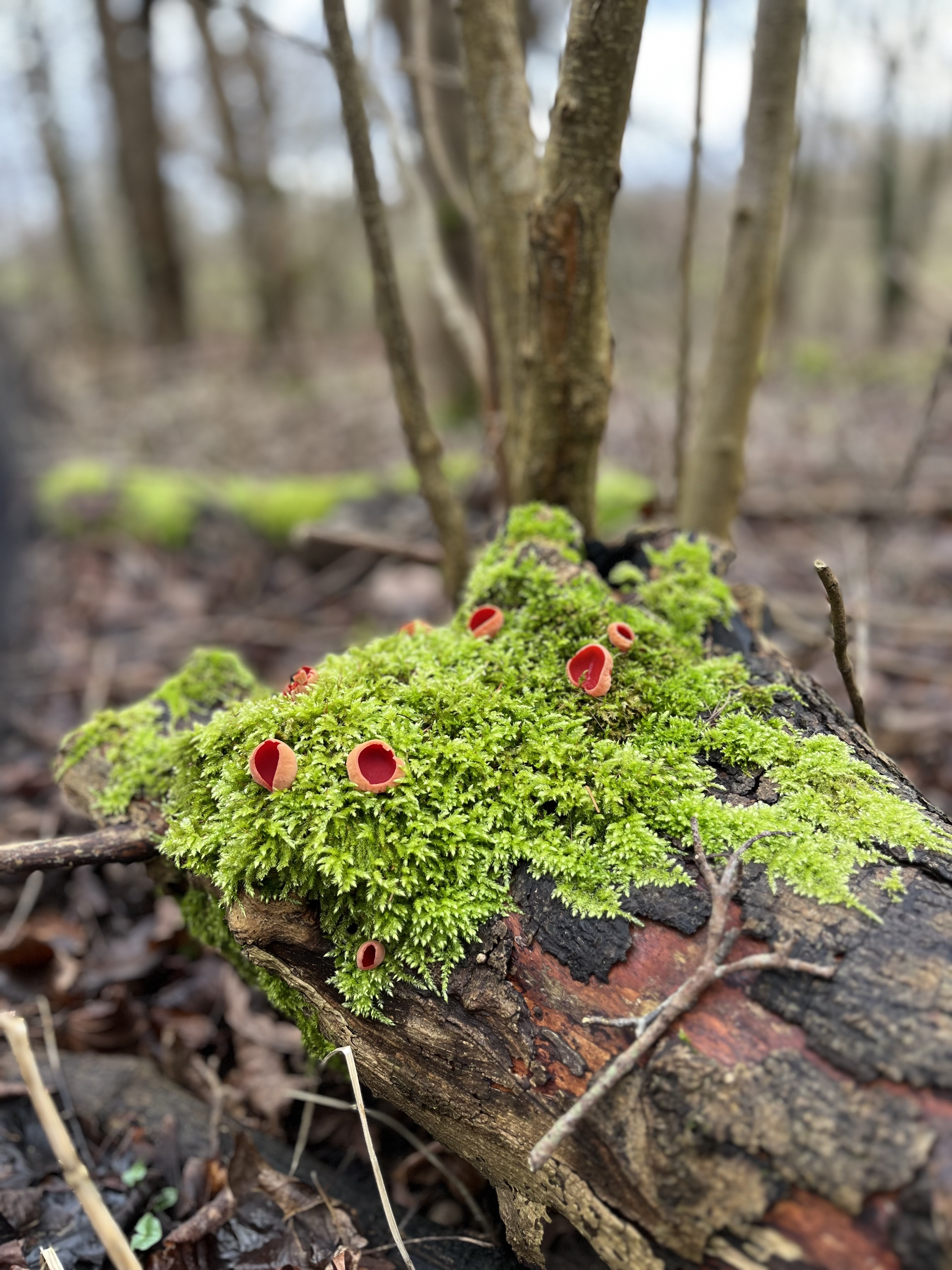 Separately, Bruce sent me this interesting picture of scarlet elf cups, taken in local woodland: